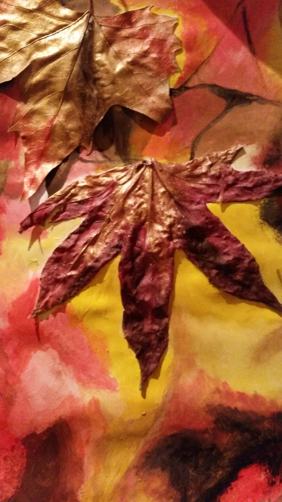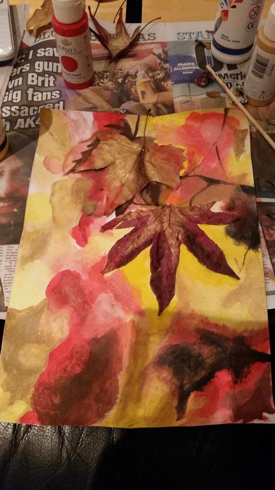 | Stick on the leaves and paint |