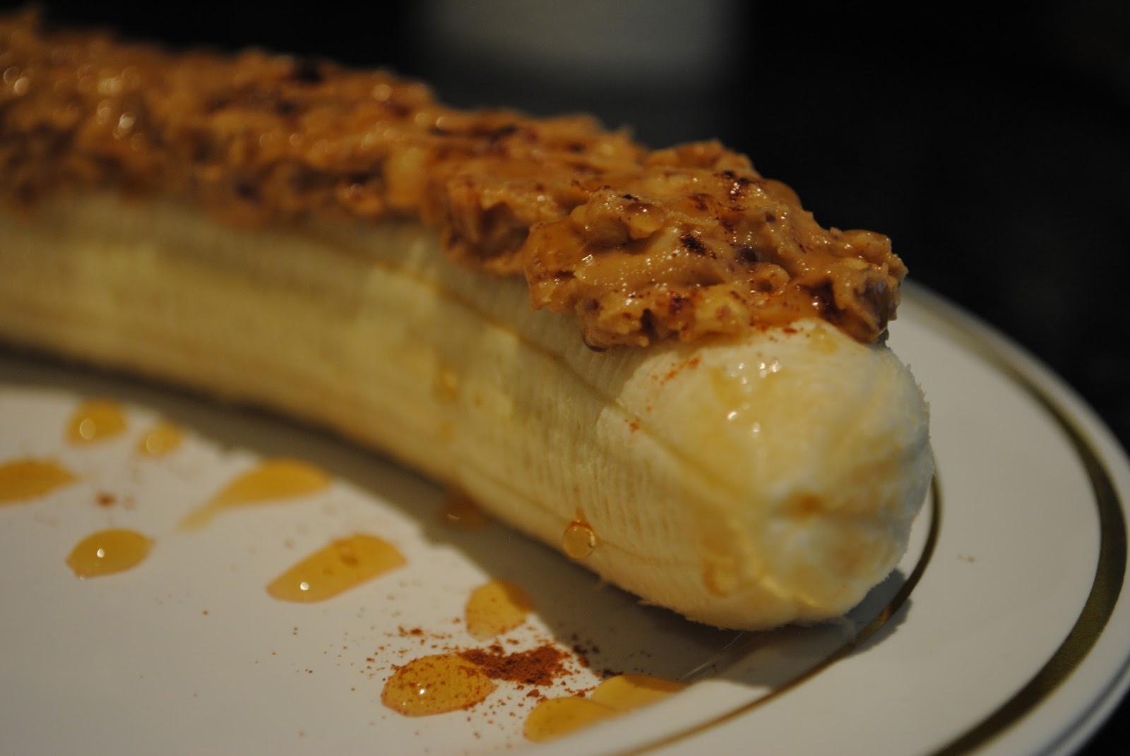 My friend Namo, however, transferred her sweet tooth fetish on a nutritious banana by adding to it a generous spread of peanut butter, a pinch of cinnamon and a zigzag drip of brown rice syrup.